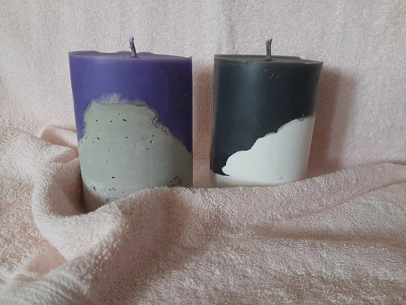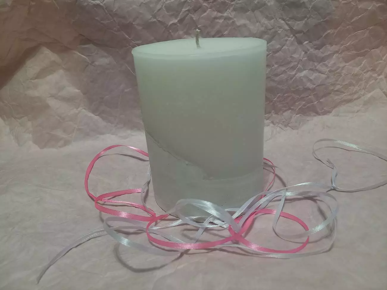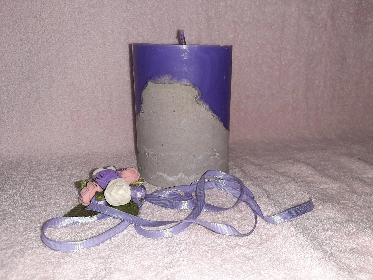 Велика свічка на бетоні діаметром 10 см і висотою 14 см. Виготовлена із якісної свічної маси та натурального гноту. Колір свічки можна обрати різний. Час горіння приблизно 200 годин. Така свічка може бути самодостатнім подарунком