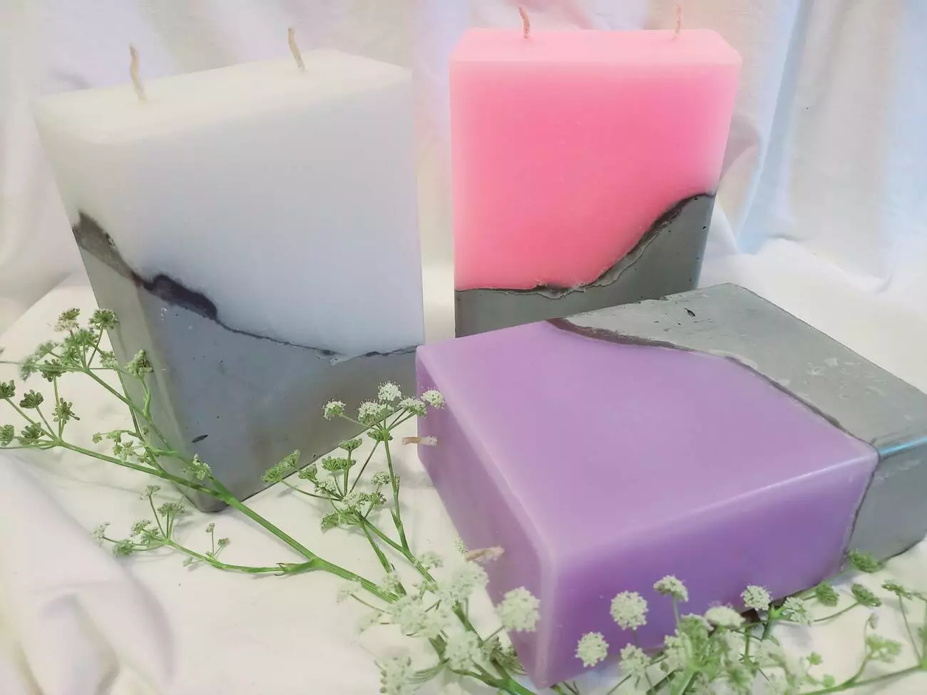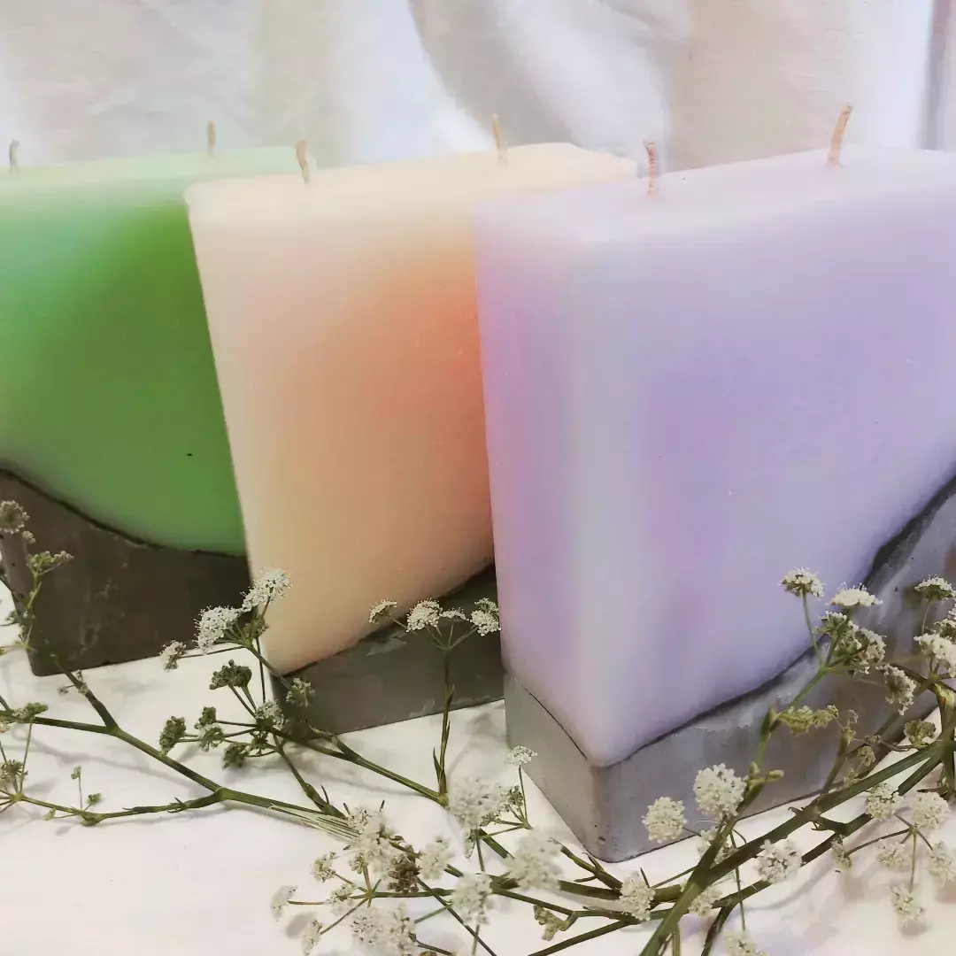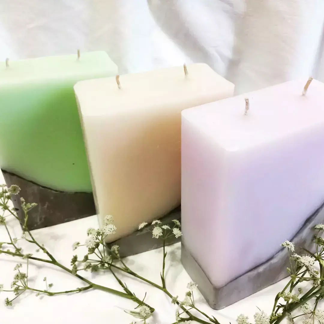 Касетна прямокутна свічка на бетоні. Має 2 гноти. Таку свічку можна ставити навіть на ванну і створювати романтичну атмосферу. Розміри : 5/10/15 см. Колір свічки підбираємо індивідуально. Термін горіння - до 200 годин.