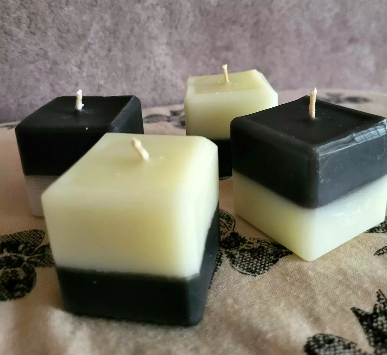 Маленькі квадратні свічки 4×4 см стануть окрасою будь-якого приміщення. Вони молочно-чорні.