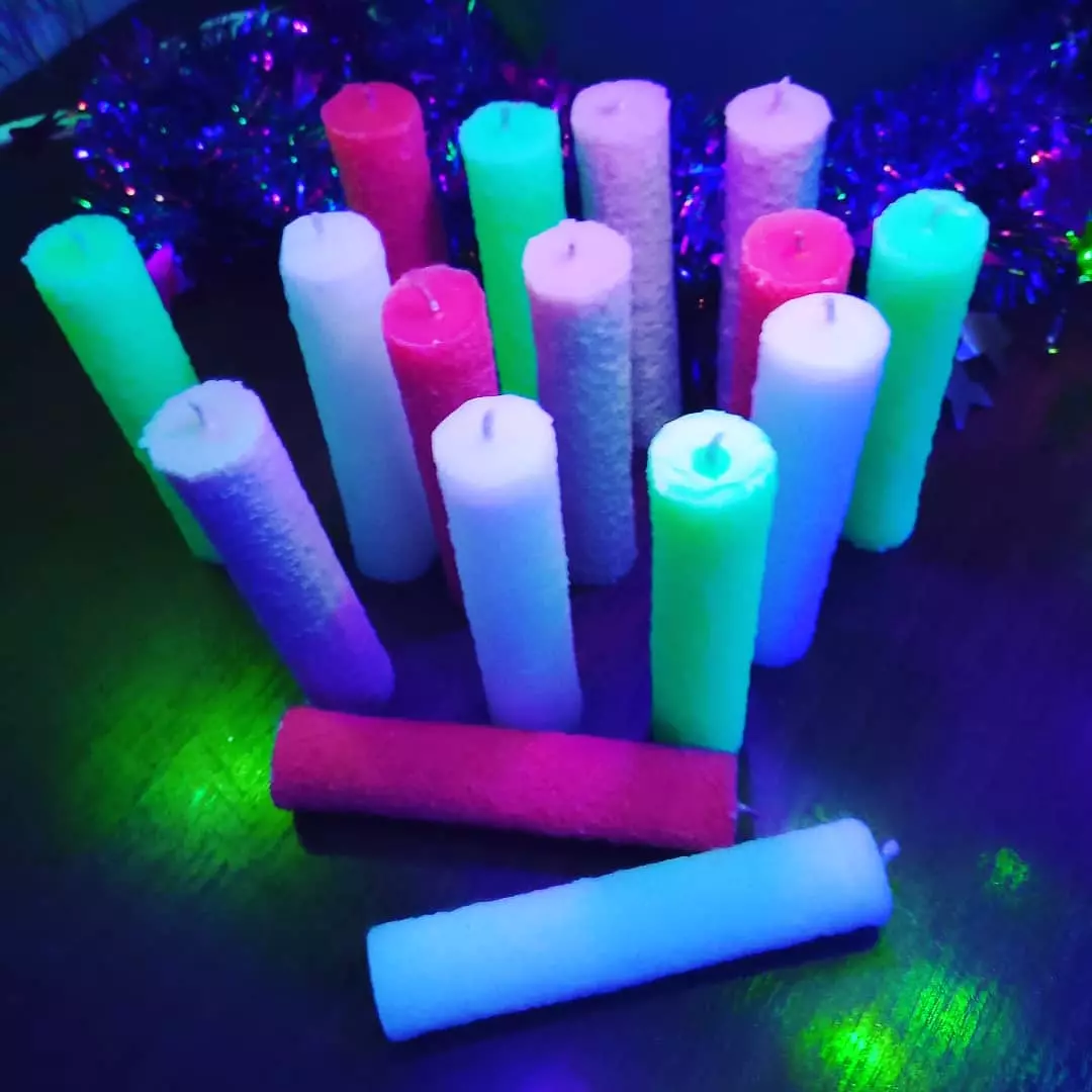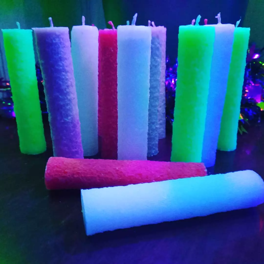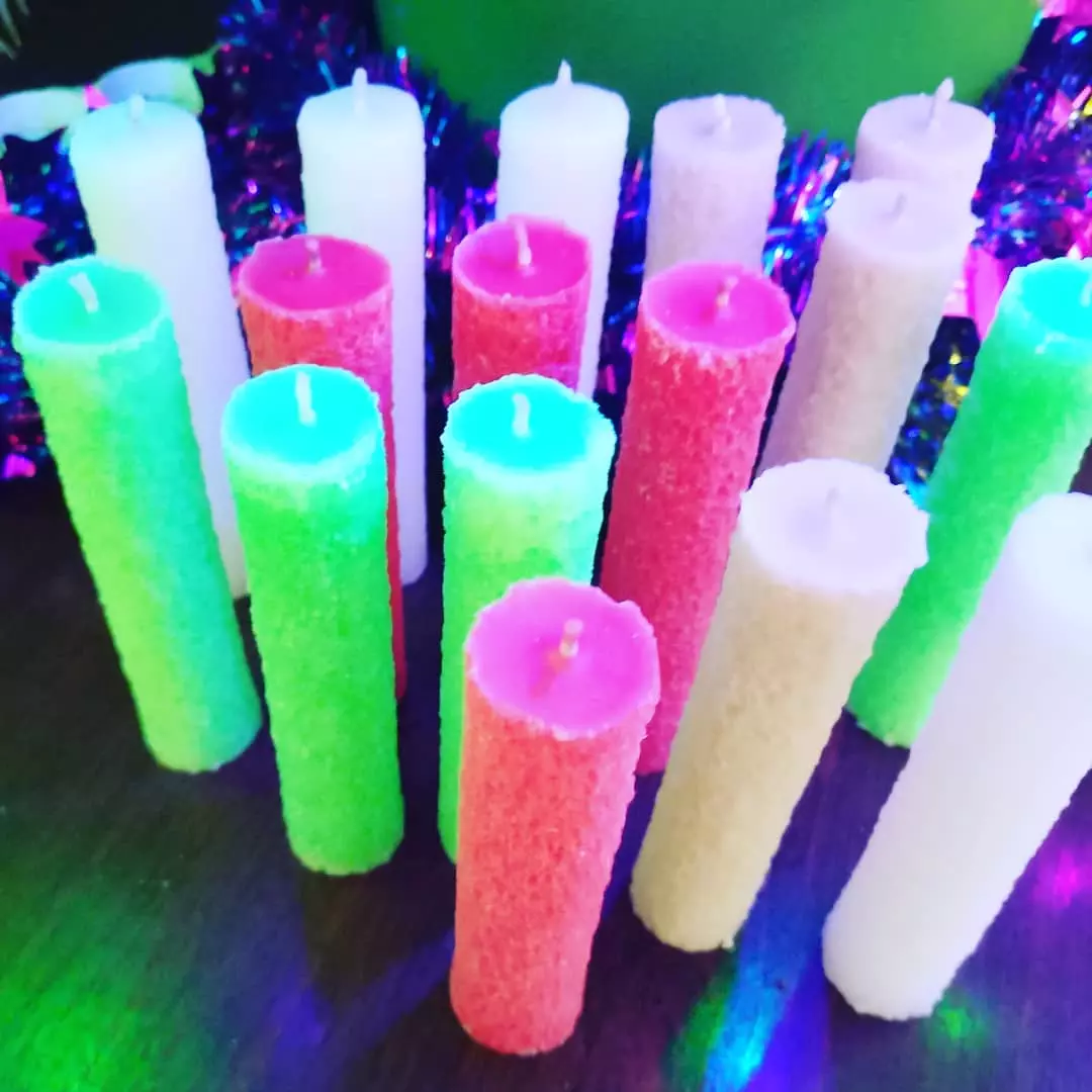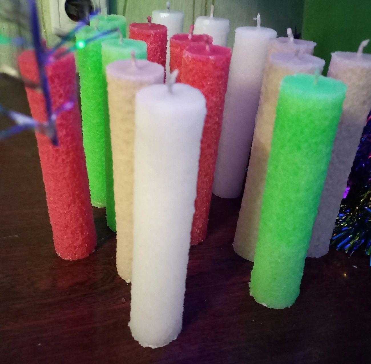 Яскраві рифлені свічечки з ефектом мармуру на поверхні. Ручна робота. Виготовлені за спеціальною технологією із харчового парафіну зі стеарином. Висота 12 см