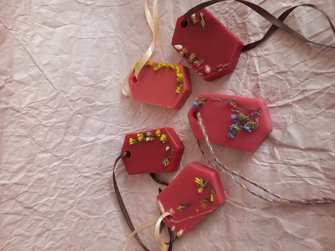Ароматні саше із бджолиного воску з додаванням натуральних сухоцвітів та ефірних олій. Колір і розмір обговорюються індивідуально. Ручна робота