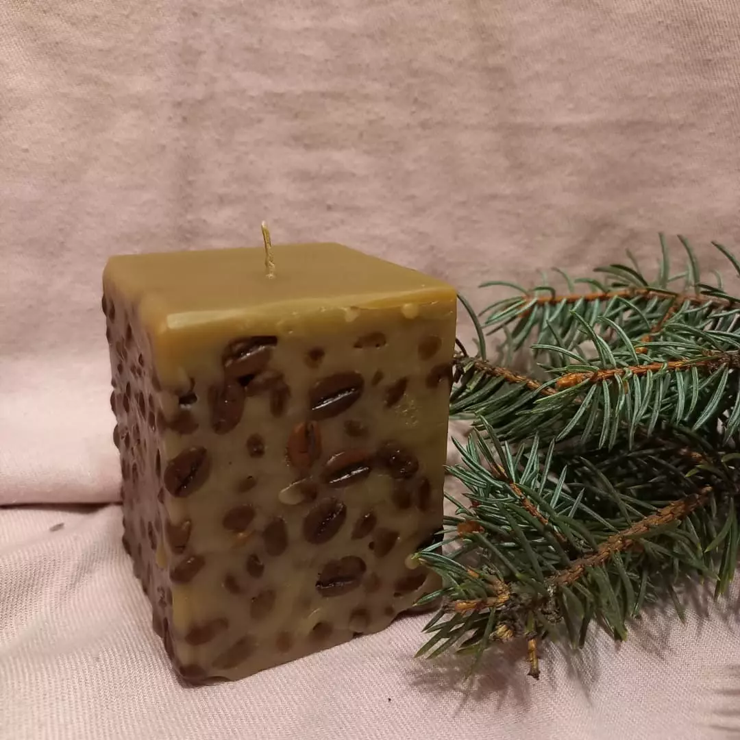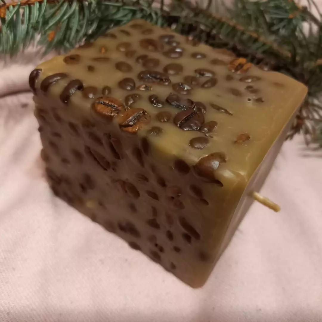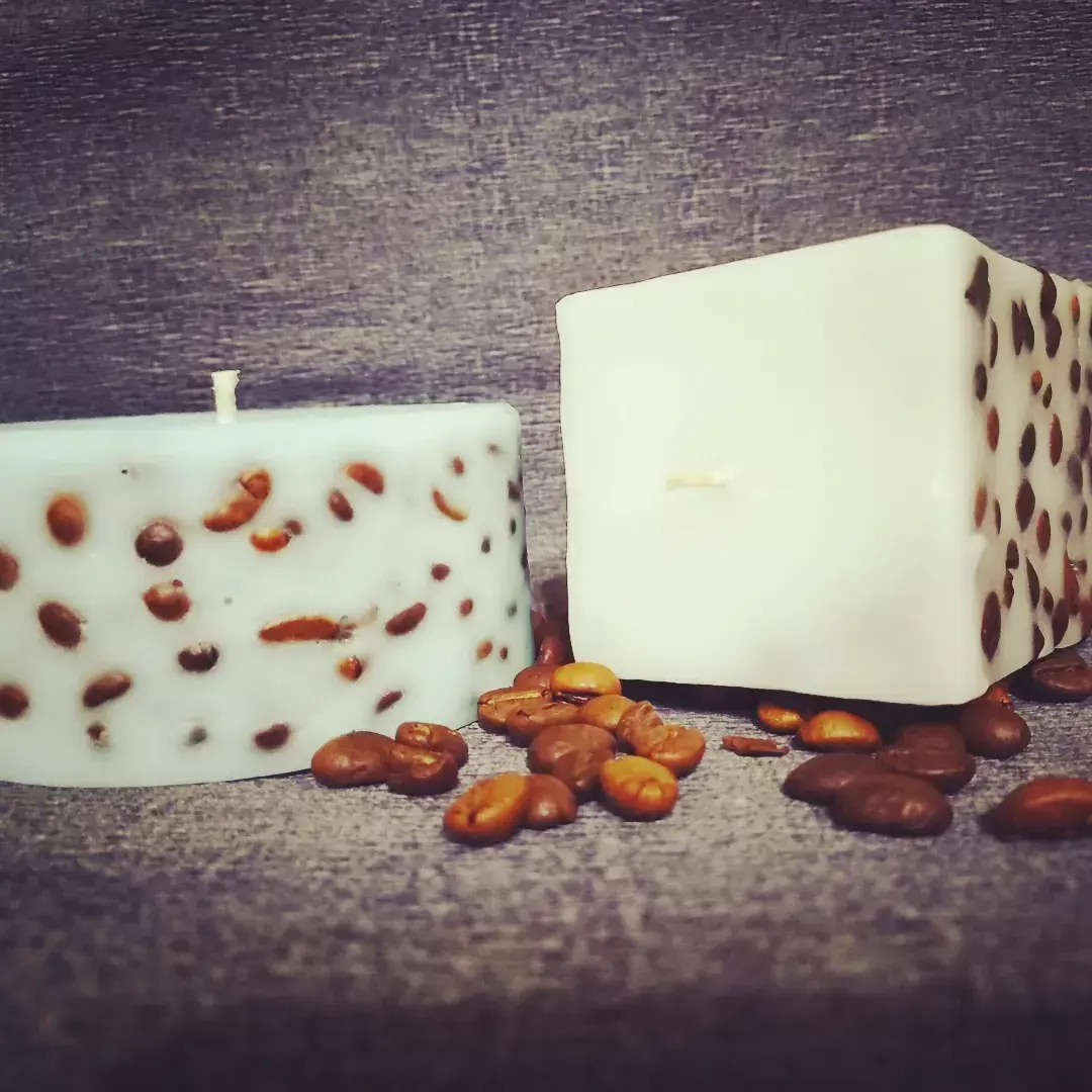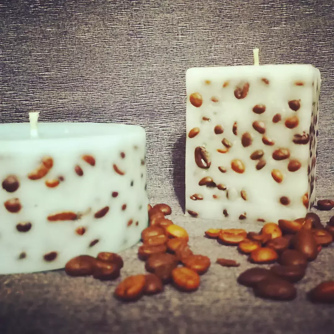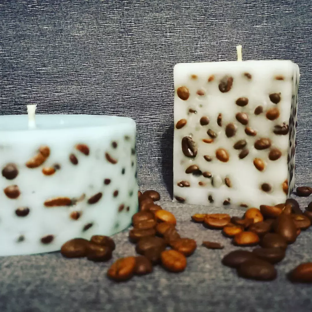 Свічка із зернами кави має неймовірний аромат. Виготовлена так, що під час горіння зерно не страждає. Горить довго і якісно. колір і форму обираєте ви : круглу чи прямокутну